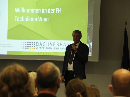 In Kooperation mit dem Dachverband Wiener Sozialeinrichtungen organisierte das Team der "Wissensdrehscheibe für Barrierefreie Technologien" am 7. September 2022 an der FH Technikum Wien die Fachtagung zum Thema „Gesundheit und Unterstützte Kommunikation“. Im Namen der Organisator*innen begrüßte zunächst Toni Schmalhofer vom Dachverband die mehr als 70 Gäste. FHTW-Vizerektor Stefan Sauermann verwies in seinem Eröffnungsstatement auf die Bedeutung der Vernetzung der Systempartnerinnen und die Einbindung von Betroffenen in der Verbesserung der durchgängigen Gesundheitsversorgung.