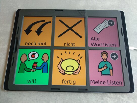 Im Rahmen von zwei kleineren Fokusprojekten wurden auf Anfrage von NutzerInnen etwa eine kostengünstige Halterung für Tablet-Computer/Laptops konstruiert, und spezielle Fingerführ-Raster zur Nutzung einer Applikation für Unterstützte Kommunikation auf einem Tablet mittels Laser-Cutter bzw. 3D-Druck angefertigt.