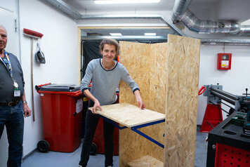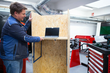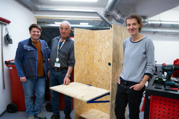Für dieses spannende Projekt machten sich Roland (CEO /Founder des HappyLabs), Gerhard (Mitarbeiter des HappyLabs und gelernter Schlossermeister) sowie Martin und Johanna (LehrerInnen des Mobilen Motorik Teams) ans Werk. Ziel des Projekts war es, einen vohandenen Tisch im HappyLab so umzubauen, dass die Benutzung von Laptops auf diesem Tisch auch für RollstuhlfahrerInnen möglich ist.