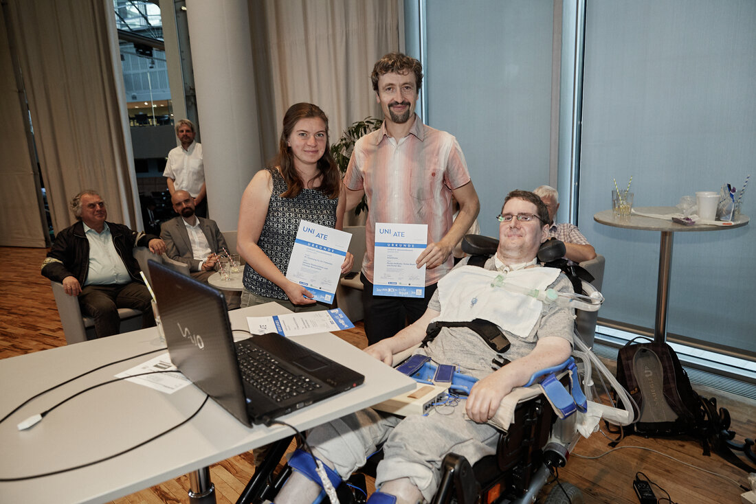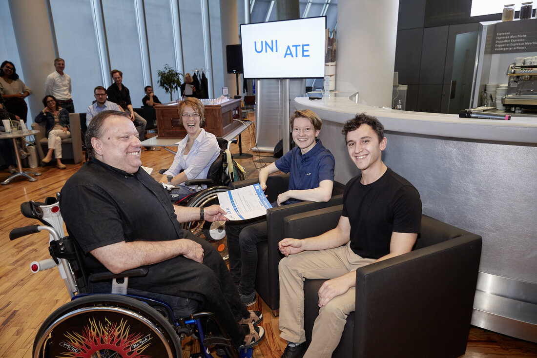 Der UNIKATE Ideenwettbewerb prämiert Ideen für neue technologische Entwicklungen, die Menschen mit Behinderungen mehr Selbstbestimmung, die gleichberechtigte Teilhabe an der Gesellschaft und damit ein Zusammenleben auf Augenhöhe ermöglichen – Inklusion im Sinne der UN-Behindertenrechtskonvention. Der Wettbewerb wird vom Österreichischen Behindertenrat (ÖAR) gemeinsam mit der TU Wien organisert, die Preisgelder werden von der UNIQA Versicherung ausgelobt. Die Preisverleihung fand am 1. 10. 2019 im UNIQA Tower in Wien statt.