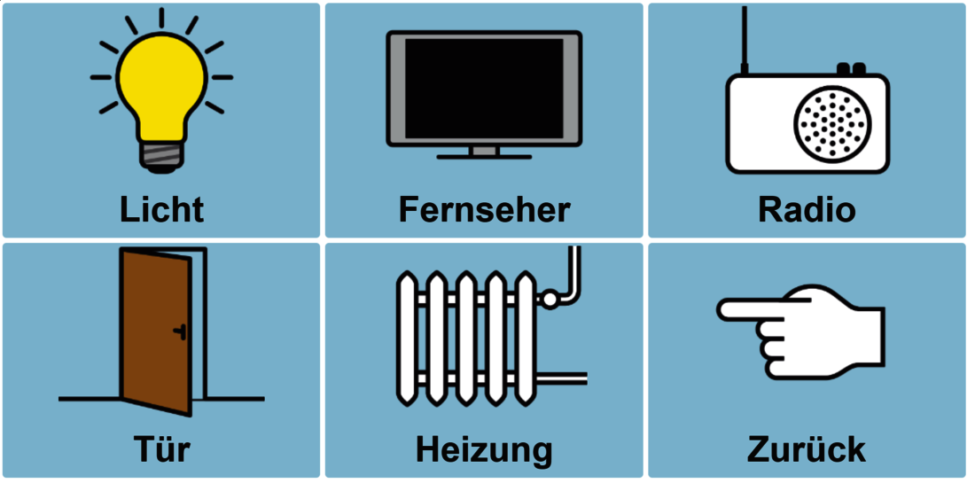 In Kombination mit einem weiteren Programm, dem AsTeRICS Framework, können weitere Funktionen wie Umgebungssteuerung (Abbildung 3) oder individuell angepasste Eingabemöglichkeiten realisiert werden.